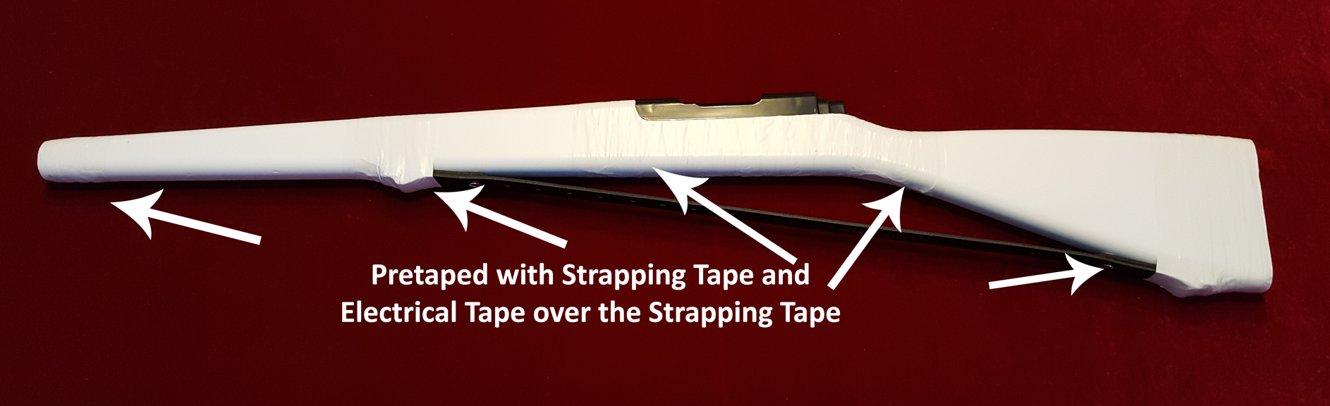 King Kong rifles come in 36”, 37.5”, and 39” lengths with choice of bolt and strap colors. This amazingly strong rifle is internally engineered to make it the lightest, strongest, and fastest wooden rifle available. The perfect balance point allows there to be no drag and practically rotates itself. It is manufactured with the same pride and integrity of our famous king sabre. King Kong rifles come already strapping taped with white electrical tape over the strapping tape on the ends of the rifle and through the center section of the rifle (please see diagram ) There are no options for the rifle to be sold without our professional taping system. Rifles are available with white or black strap and your selection of bolt color. Rifles are sold with straps. Once again, the King Kong rifle is the lightest, strongest, fastest wooden rifle available in the world and comes pre- taped by KING to save you the time and headache of taping it correctly and is only avilable with a strap.
